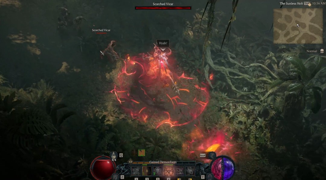 第二个体验的先锋术士风格比较适合想要自己跳入战局冲锋陷阵的人,体验先锋术士时使用到「恶魔化身」,让主角变身为恶魔型态、不仅可以增加自己最大生命值,相对增加自身存活机率,还可以得到特殊近战基础攻击与恶魔型态技能变体,游玩时必须要想办法妥善把握时机,来运用并极大化变身期间的火力。试玩到「炼狱之息」与「召唤阿巴迪」的技能也让人印象深刻,前者是召唤出一个持续10秒的恶魔头颅、围绕着你向四周喷火焰,后者则是召唤出一只地狱犬,不仅可提供火焰伤害,还可以骑乘增加移动速度,而且当恶魔型态时还可以增加玩家的最大生命值。