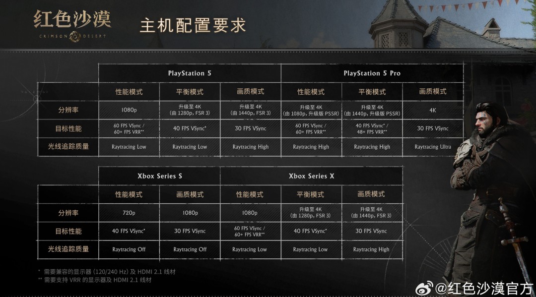 《红色沙漠》PC、主机、Mac、掌机等各平台配置如下: